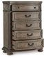 Merging traditional elegance with modern comfort, this chest of drawers takes your bedroom retreat to the next level. Serpentine curves, ash swirl veneer inlays and a glazed antiqued-look finish radiate timeless sophistication. Drawers are packed with ample storage possibilities. Talk about stunning refinement.