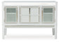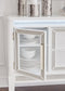 Embracing modern glamour, this server is a sparkling addition to your dining area. The bright white lacquer finish, shimmering rhinestone accents and glass panel doors give this piece plenty of polish. Discreetly placed along the upper valance, white LED lighting adds the perfect finishing touch.