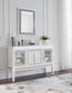 | Details | Made with solid wood components, MDF substrate and decorative PVC laminate, Bright white lacquer finish, 2 felt-lined drawers with fully finished interior, dovetail construction and ball-bearing side glides, 2 glass-front cabinets, each with adjustable shelf, Brushed champagne metal pulls, Rhinestone and textured PVC accents, LED accent lighting, Power cord included; UL Listed, Assembly required | |