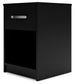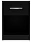 | Details | Made with engineered wood (MDF/particleboard/plywood) and decorative laminate for the right balance of affordability and durability, Matte black finish with subtle replicated wood grain, Brushed nickel-tone metal hardware, Smooth-gliding drawers with ball-bearing construction and vinyl-wrapped sides and back, Open cubby, Wire management for ease of use with clock, radio or phone charger, Assembly required | |