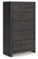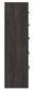 | Details | Made with engineered wood (MDF/particleboard/plywood) and decorative laminate for the right balance of affordability and durability, Charcoal finish over replicated oak grain with authentic touch, Decorative laminate replicates natural or man-made material surfaces with consistent color, pattern and texture, Large-scale dark colored handles, 5 smooth-gliding drawers, Drawer interiors are lined with a faux linen laminate for a clean, finished look, Safety is a top priority, clothing storage units are designed to meet the most current standard for stability, ASTM F 2057 (ASTM International), Drawers extend out to accommodate maximum access to drawer interior while maintaining safety, Minor assembly required | |