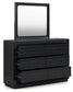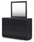 | Details | Includes dresser and mirror, Made with pine solids, veneers and engineered wood substrate, Textured black wood stain with waxy topcoat, Hardware-less design, 6 drawers with fully finished interiors, dovetail construction and ball-bearing side glides (top drawers felt lined), Mirror attaches to back of dresser | |