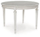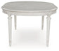 Transform your home into a haven of timeless elegance with this dining extension table. Traditionally styled, its classic antiqued white finish is paired with reeded legs and a tabletop with a butterfly-matched veneer pattern. With the removable center leaf, it effortlessly transitions from round to oval to seat six comfortably. Whether you're settling in at mealtime or working from home, this table serves your sense of relaxed refinement beautifully.
