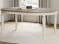 Bon appétit. This dining room extension table has all the right ingredients for a French country-inspired feast for the eyes. Drop-in leaf allows you to transform an intimate round dining table into a gracious oval dining table that comfortably seats six. Antiqued two-tone aesthetic pairs a chipped white with a distressed wood finished top for a double serving of charm.