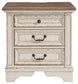 Elevating the art of traditional cottage styling, this nightstand is your dream bedroom retreat realized. Its antiqued two-tone aesthetic blends a chipped white with a distressed wood finished top for added charm. Framed drawer fronts and decorative corbels add refinement, while bail pulls in a dark bronze-tone finish lend a classic touch. Subtly placed USB/electrical outlets meld vintage inspiration with modern convenience.