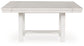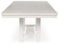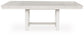 | Details | Made with rubberwood solids, ash veneer and MDF substrates, Antiqued white finish with grain texture, Tabletop with planked effect, Two 12" removable center leaves, Table extends to 86" overall by pulling both ends and dropping in leaves, Seats up to 8, Assembly required | |